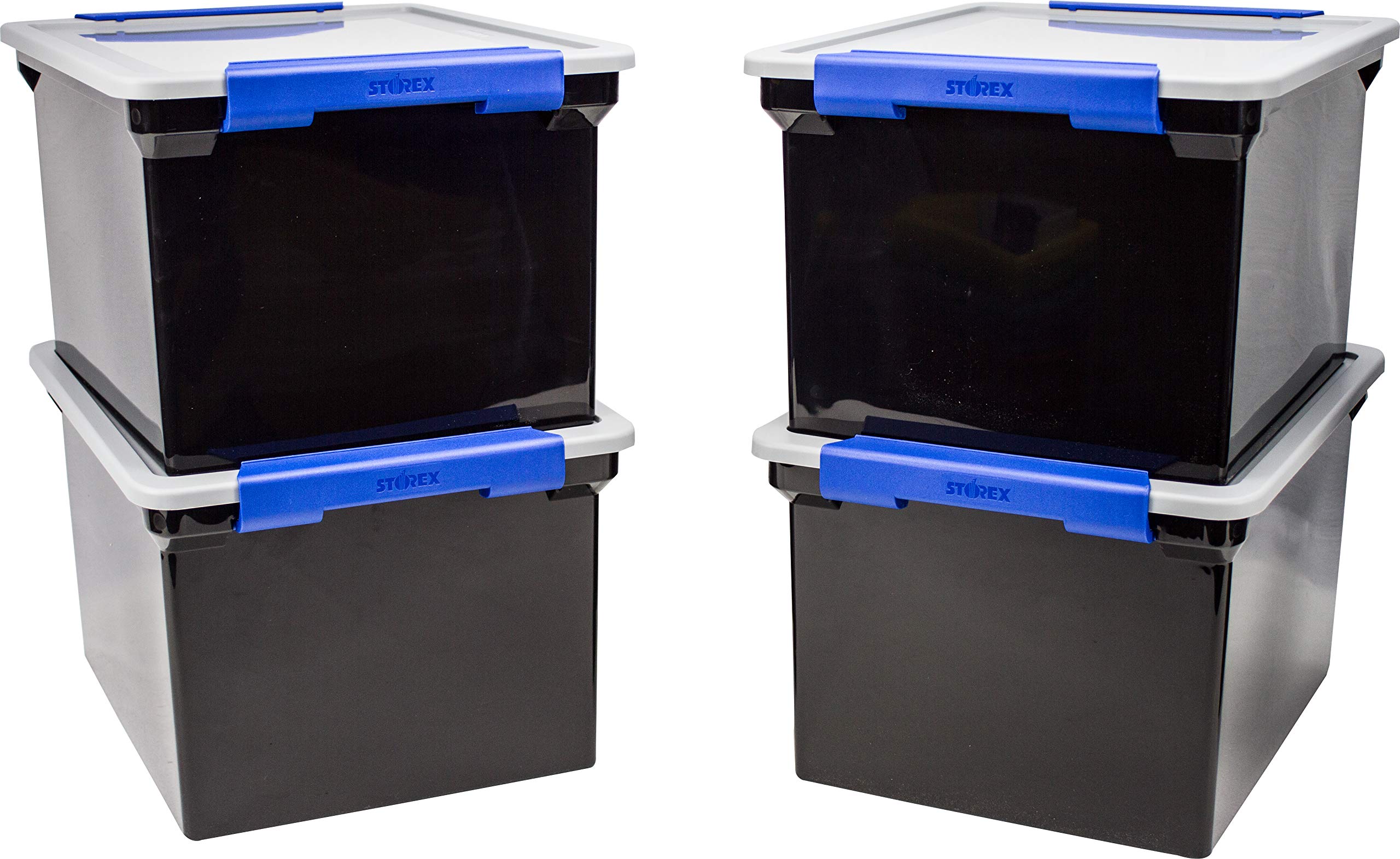 Storex Storage File Tote with Locking Handles, Black/Silver, 4-Pack (61543U04C)