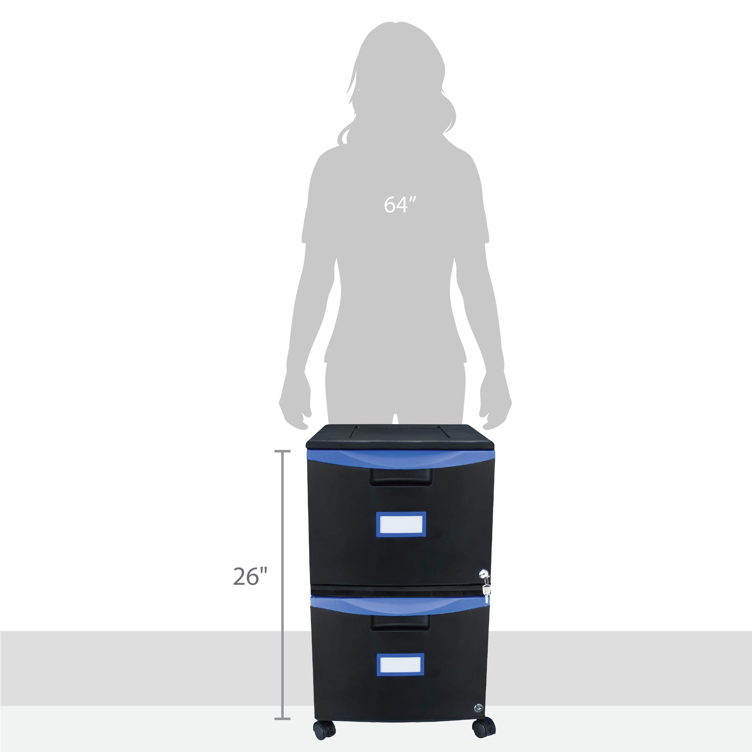 Storex Two-Drawer Mobile Filing Cabinet, 2 Legal/letter-Size File Drawers, Black/blue, 14.75" X 18.25" X 26"